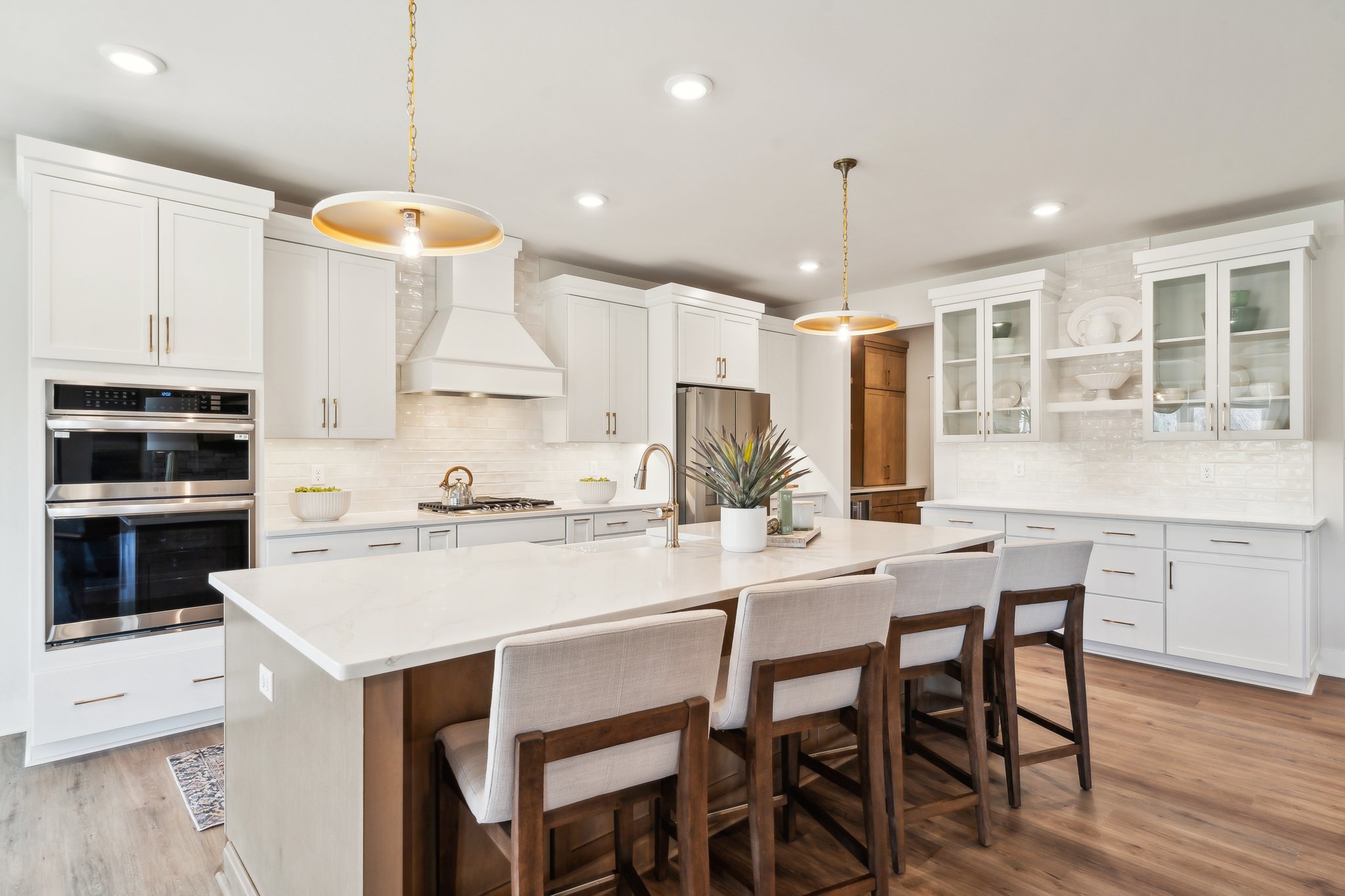 - Oversized islands for seating and meal prep